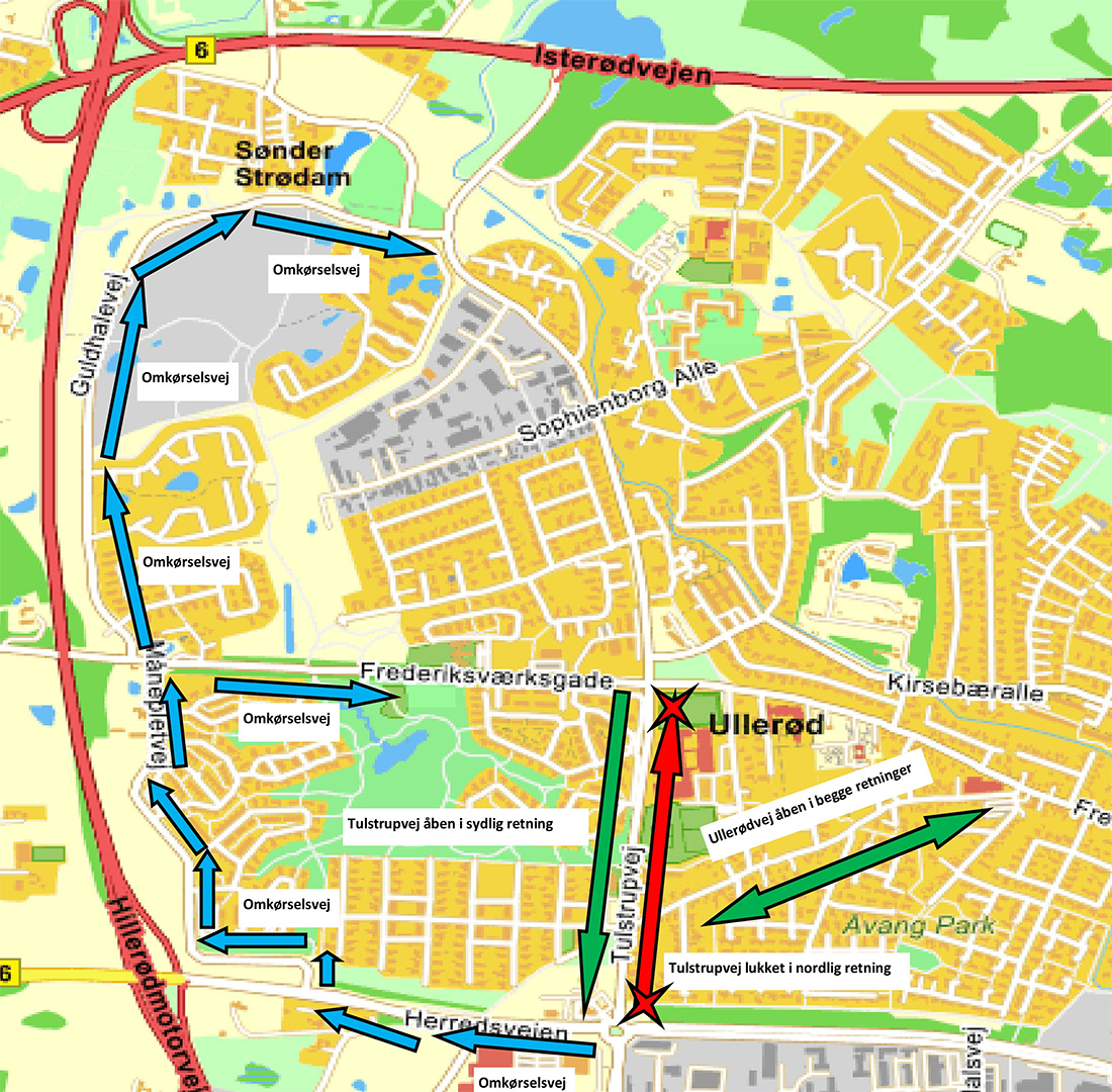 vil Tulstrupvej blive ensrettet. Sporet fra Herredsvejen til Frederiksværksgade lukkes helt, så at entreprenøren kan udføre deres arbejde sikkerhedsmæssigt forsvarligt.