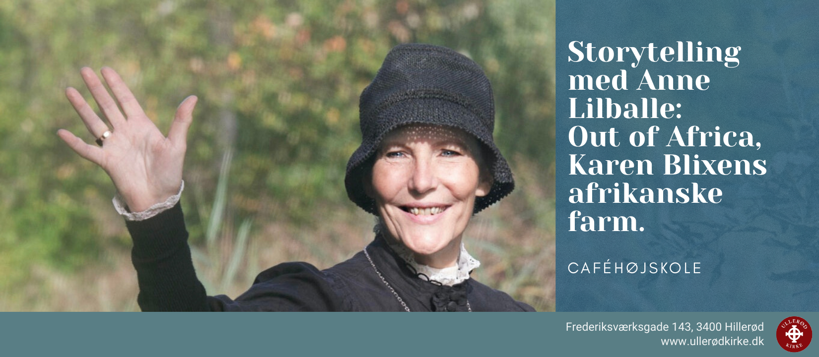 Ved skuespiller Anne Lilballe i rollen som storytelleren Karen Blixen. Med Rungstedlundfondens tilladelse.
